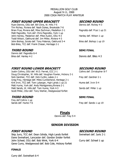 The 2000 CDGA Amateur Championship was a multi-day tournament held at Medallion Club in Westerville, OH.